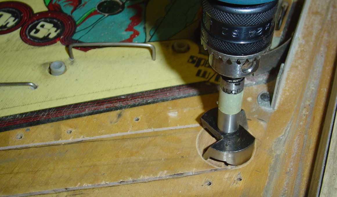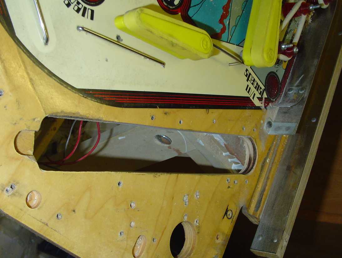 You need three switches to detect that all balls are in the ball trough. So williams made a large hole under the apron in the playfield to store the three balls and to mount the switches: