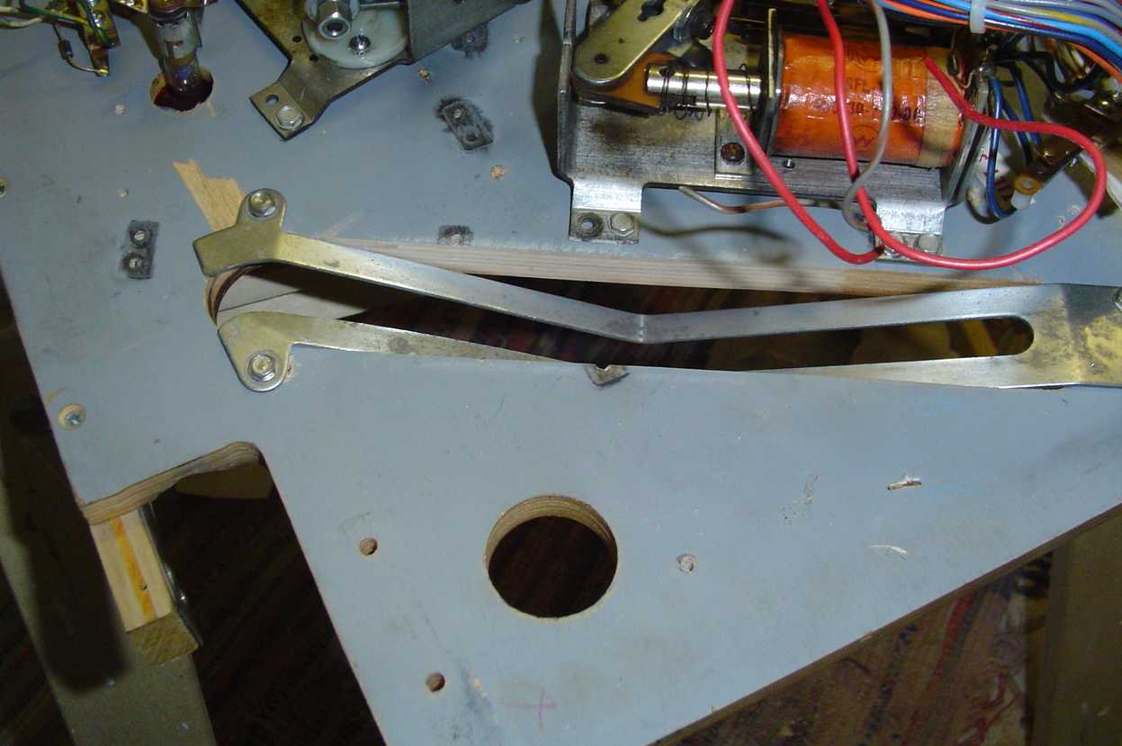 We have a little space problem here. If I move the playfield tilt switch around, I will get additional place to mount one flipper assembly in the same way as in firepower...