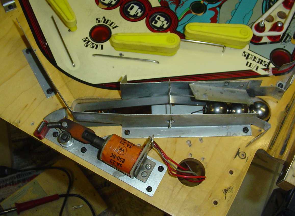 Important: Make sure that this switch is only closed when three balls are in the ball trough. Go into the switch test, put only two balls in the ball trough and push them around from the side, this switch shoould not register !