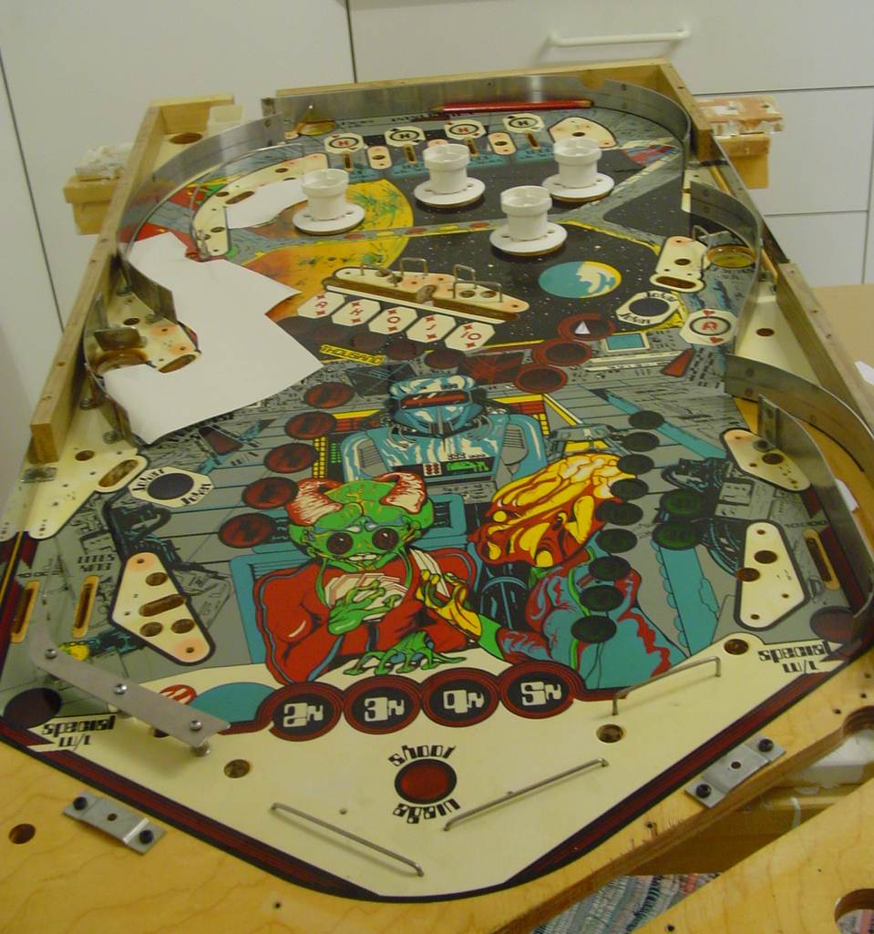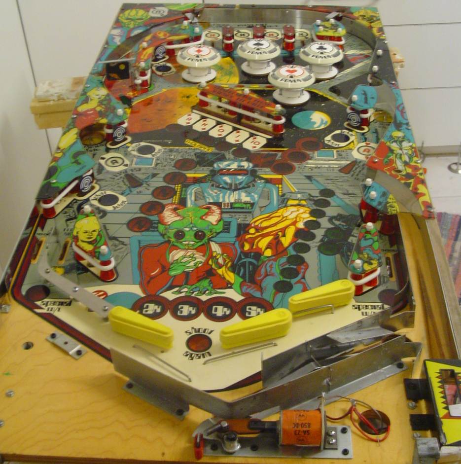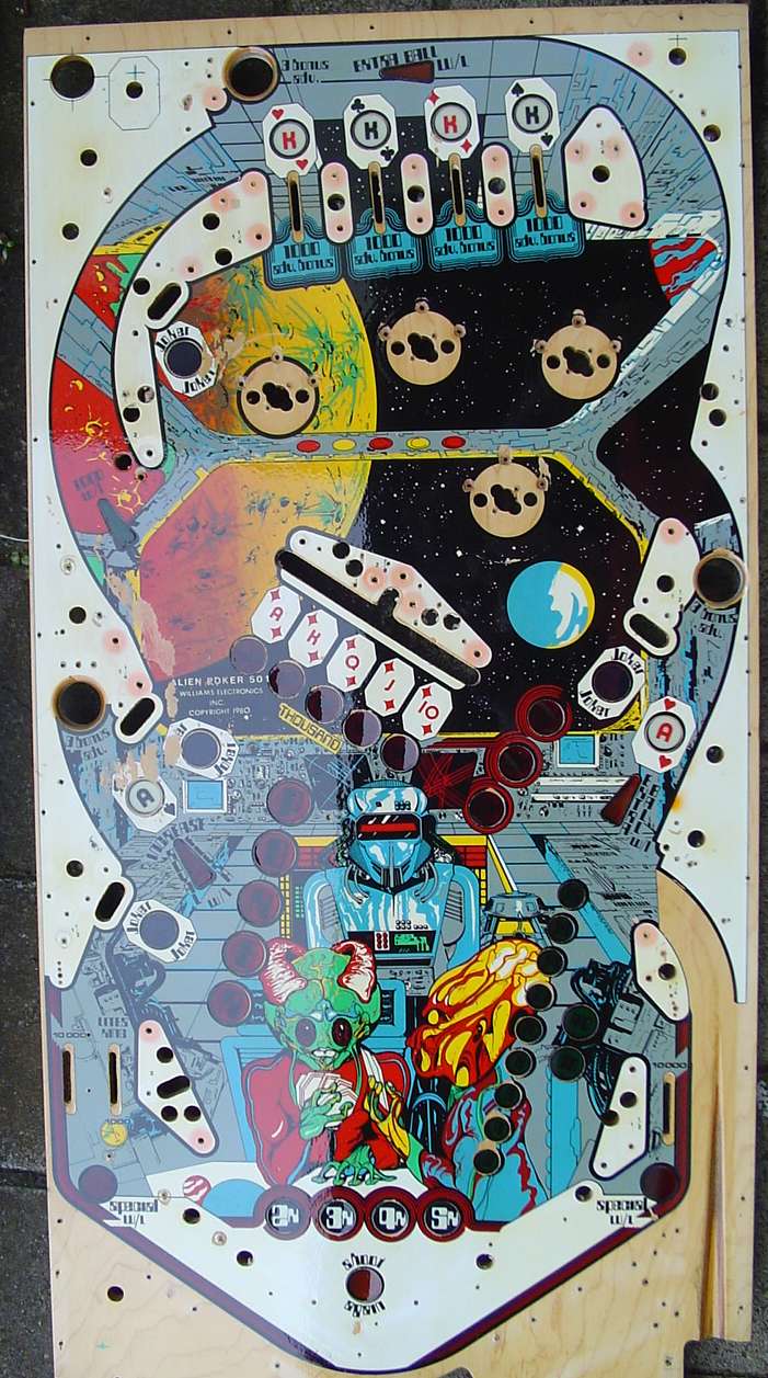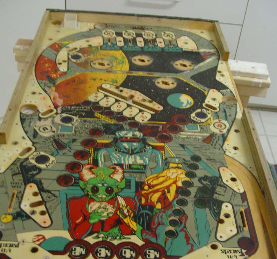 After the multiball update, I decided to work on my alien poker playfield. I found a good used playfield as a part of a "I will repair your bally pcbs deal...".
