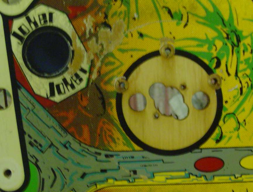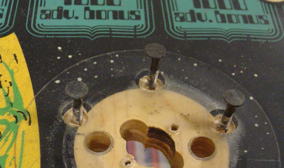 First I removed the bumper screws...I used a hammer and a piece of wood from the other side of the playfield..