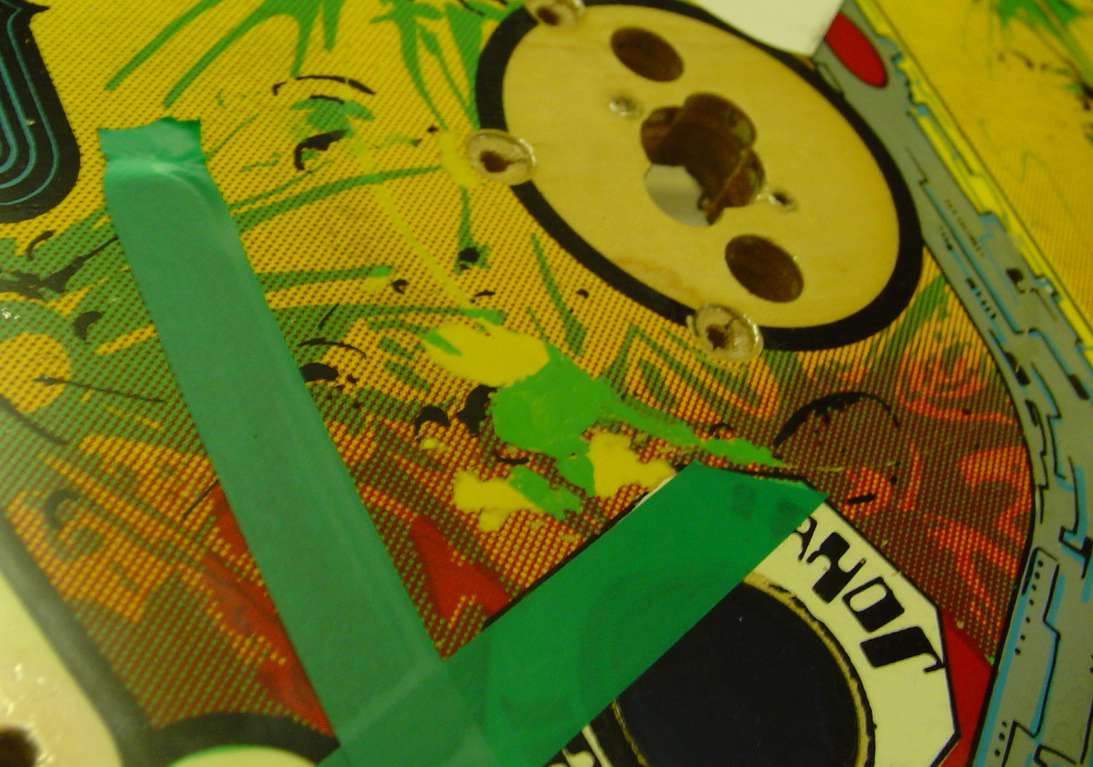 Before the touchups, I prepare the playfield for the multiball conversion...