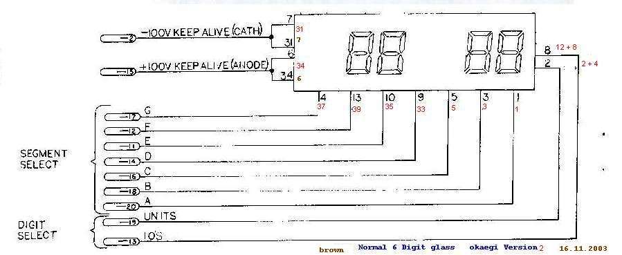 I connected pin 1,2,3,5,6,7,8,31,34 from the 6 digit glass direct to the pcb holes.